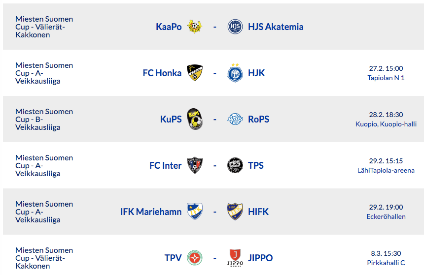- 2 teams that were finalists in the 2020 Kakkonen cup (still currently being played)
