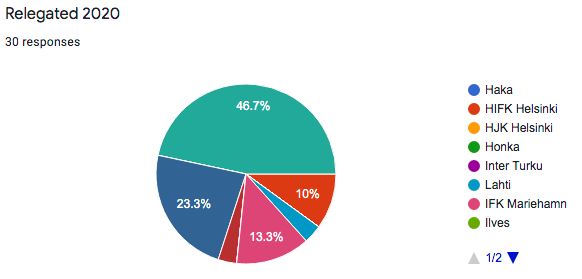 HJK Helsinki (23 responses) , Inter Turku (2), HIFK Helsinki (1), Honka (1), Ilves (1), KuPS Kuopio (1), SJK Seinäjoki (1)