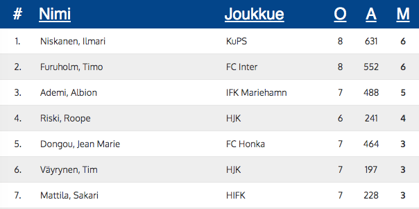 Veikkausliiga Top Scorers – After 7-ish Games!