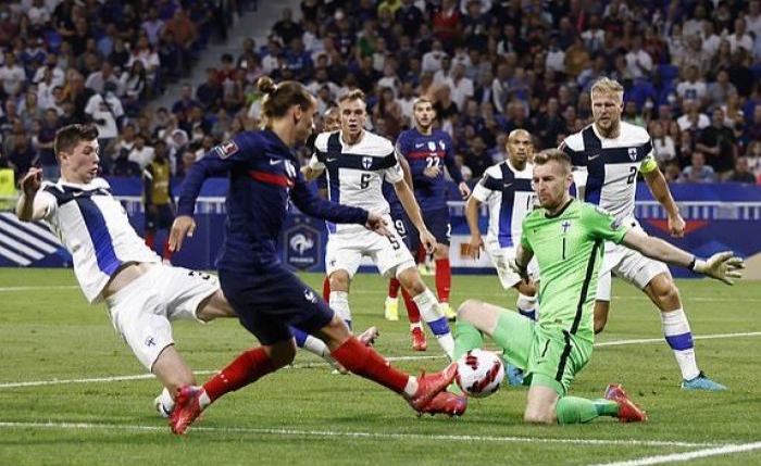 There was a similar style to France’s second, although this time Jere Uronen was limping around following an awkward collision with Leo Dubois, the full back cut the ball inside to the advancing Greizman, the pacey Atletico forward dribbling to the byline before smashing home from an almost impossible angle on 54 minutes.