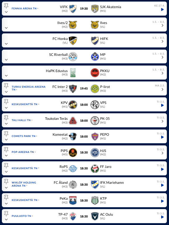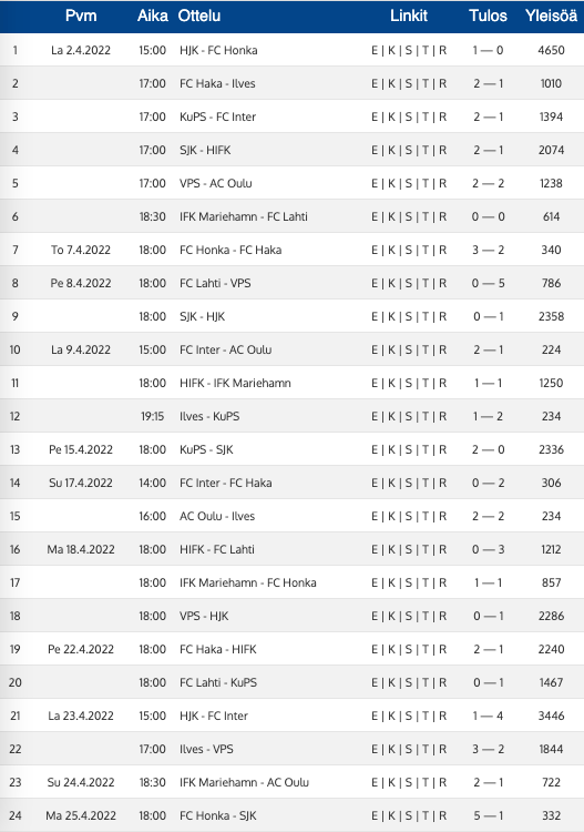 - HIFK vs HJK, Thursday 28.4.2022, 18:00