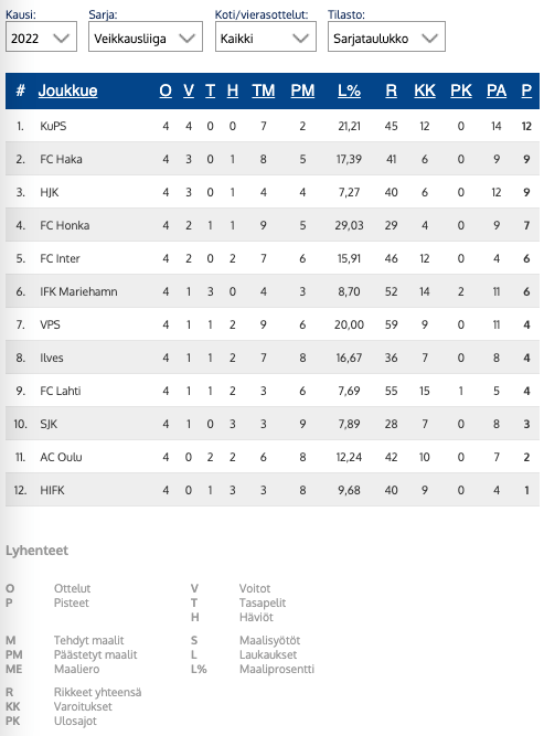 The FFS team was selected from a full squad for this episode as Mark W, Rich, Keke & Mark H reconvene to bring you an update across the world of football in Finland. We start by looking at the current state of play in Veikkausliiga 2022, where all the teams have played four games.