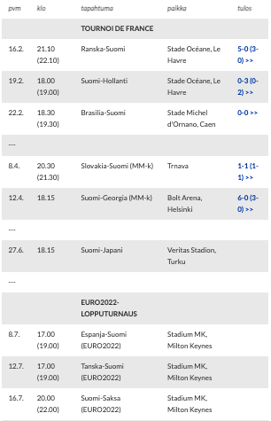 - 12.4.2022 – Suomi 6-0 Georgia