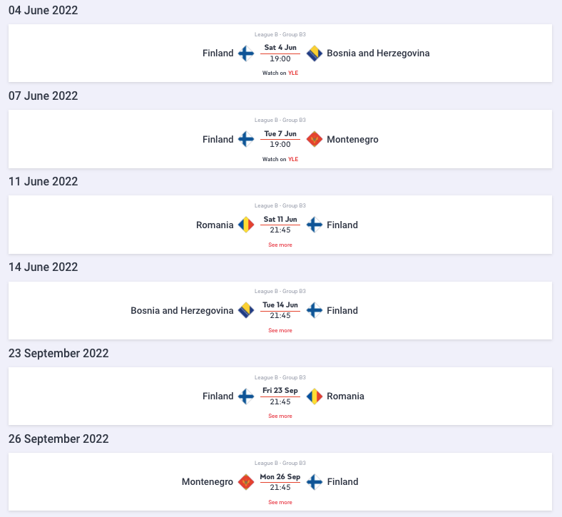 - Finland vs Bosnia-Herzegovina https://areena.yle.fi/1-62071244