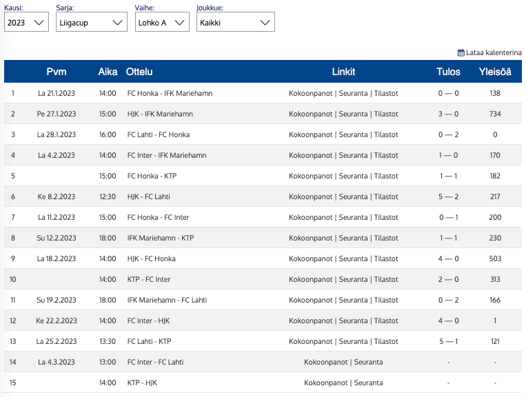 http://www.veikkausliiga.com/uutiset/2022/12/21/liigacupin-2023-lohkovaiheen-otteluohjelma-valmis
