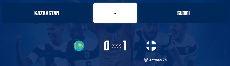 The Huuhkajat battled to three more important points to remain among the contenders at the top of qualifying group H. The 1-0 win away to Kazakhstan saw a dogged Finland control possession and take a late win, through Oliver Antman, in a scrappy match.