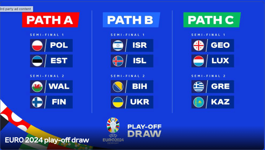 Euro 2024 Playoffs – based on Nations League 2022-23 standings