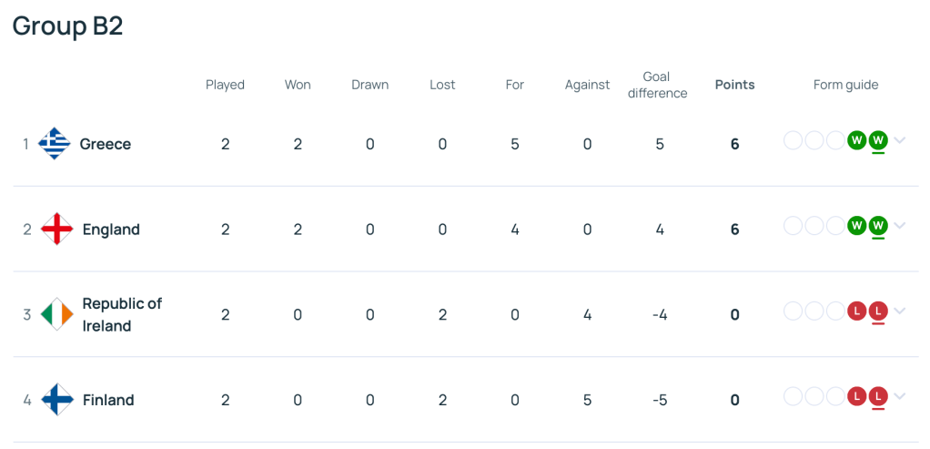 - Finland 0-0 Ireland