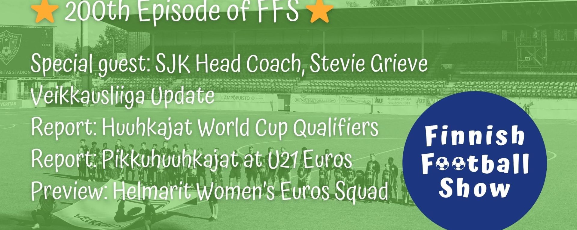 Special episode, this one, as FFS achieves its 200th episode. SJK Seinäjoki Head Coach, Stevie Grieve joined Mark W and Ally to chat about SJK’s season so far. They are then joined by occasional contributor, Seppo, who is the middle of a busy summer of international football.