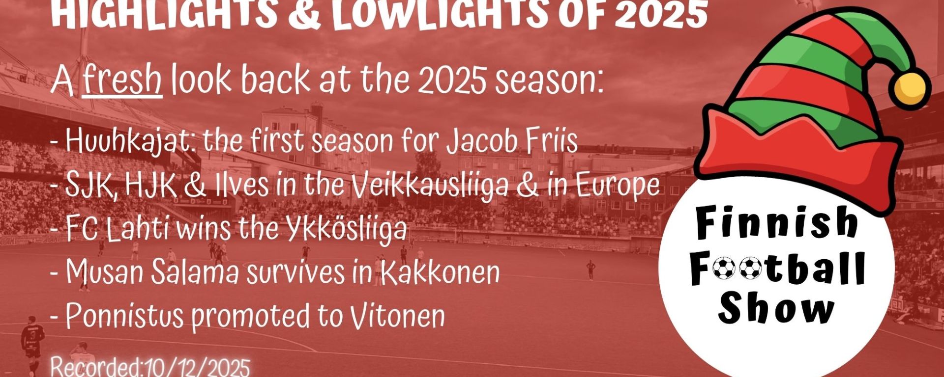Mark W, Ally and Rasmus take a look back at the 2025 Finnish football season. This is not just a highlights show, they take a fresh look at their own experiences of the past year and invite some regular contributors to join them. So, we also hear from Jules (SJK Seinäjoki), Joe (Musan Salama), Seppo (FC Lahti & international tournaments) and Keke & Mark H (Huuhkjat under Jacob Friis).